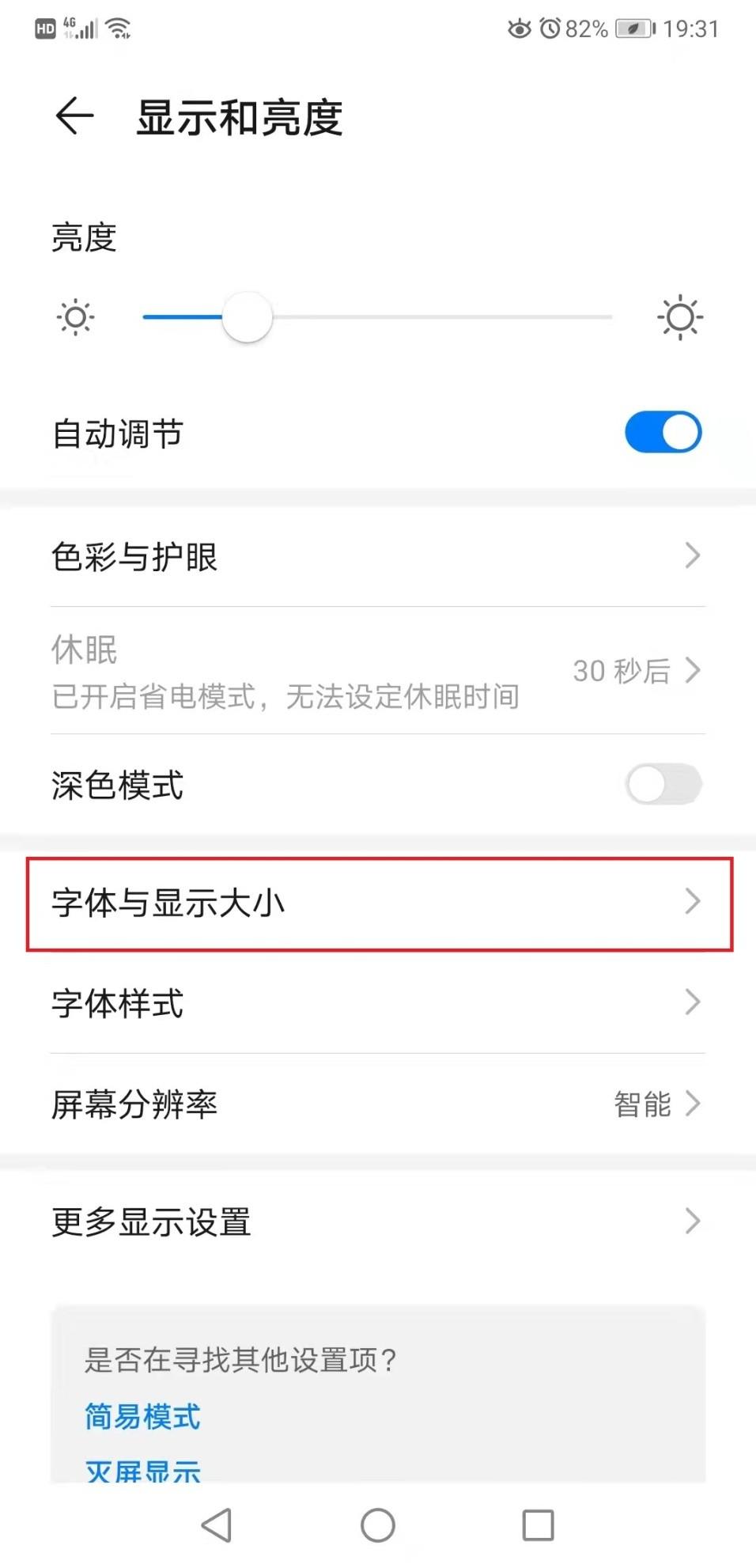 步骤1首先,我们打开华为手机的设置。步骤2点击这里面的“显示和亮度”。步骤3然后点击这里面的“显示大小”。步骤4然后会看到下面的调节条。步骤5我们...
