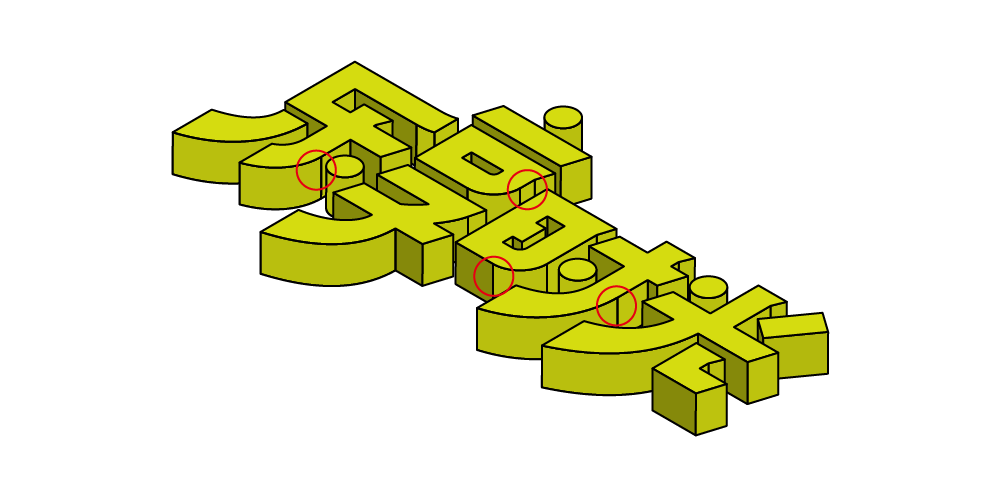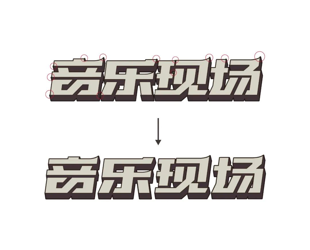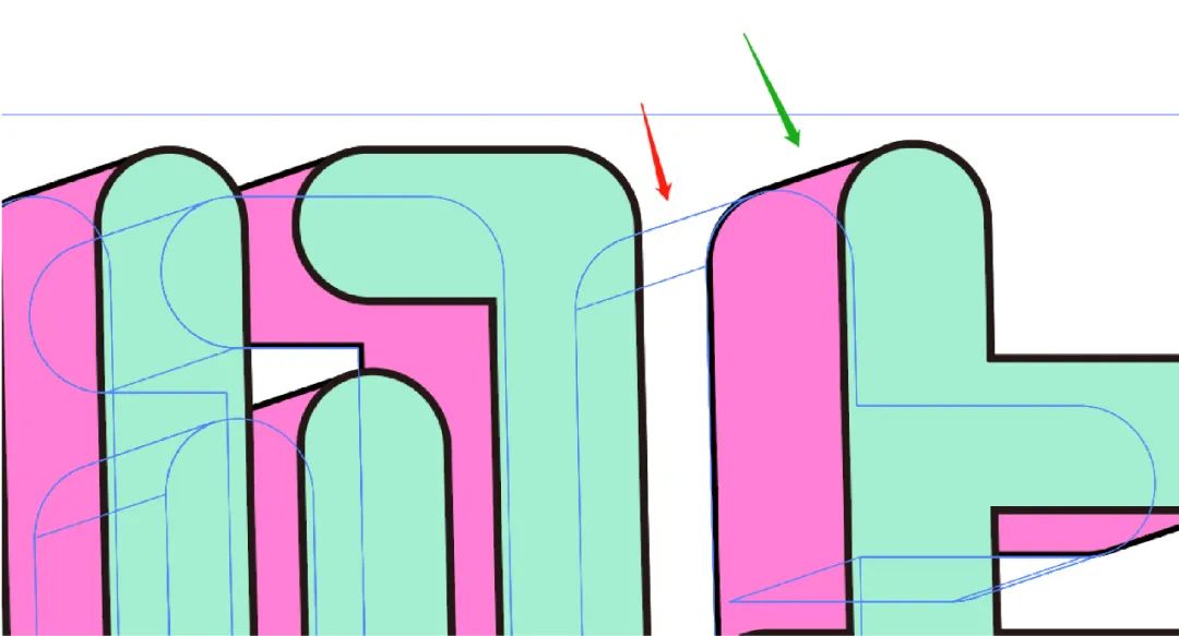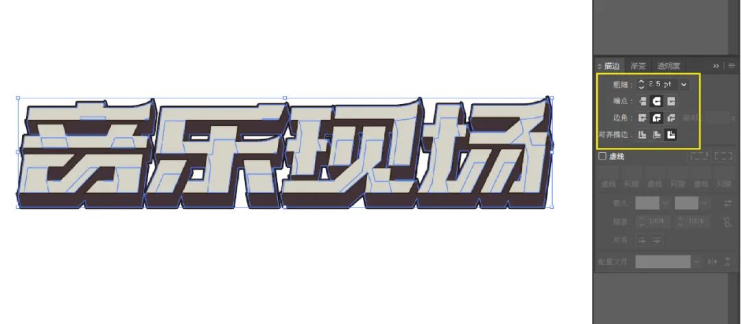 给取消群组后的字体添加一个描边,然后再把侧面有多余竖线的地方合并: