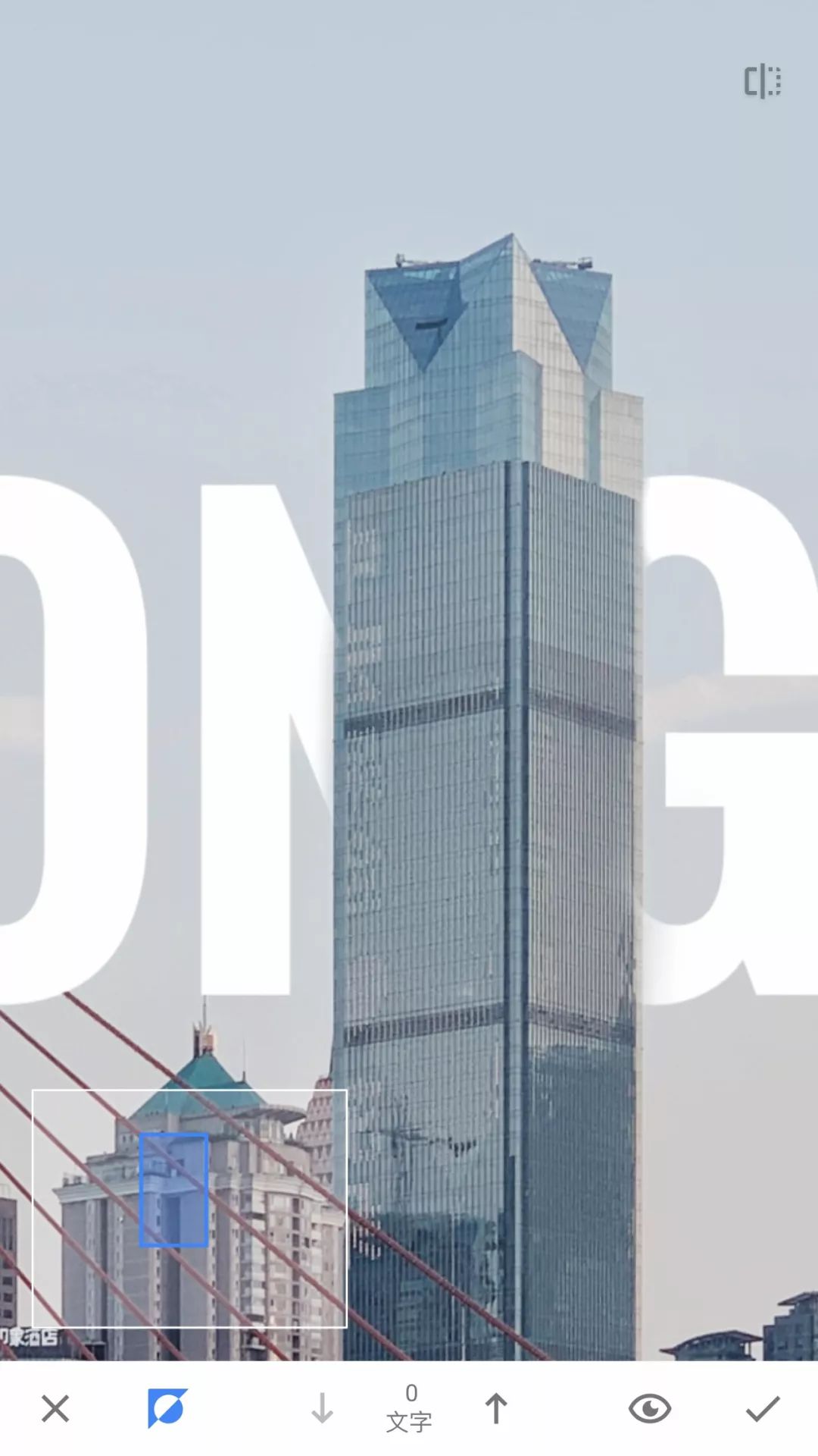 然后再放大画面(两个手指滑动屏幕放大图片),直接对文字和建筑物重叠的地方进行涂抹的操作,最好把照片放到最大的程度,这样在涂抹建筑物边缘时能有更好的效果: