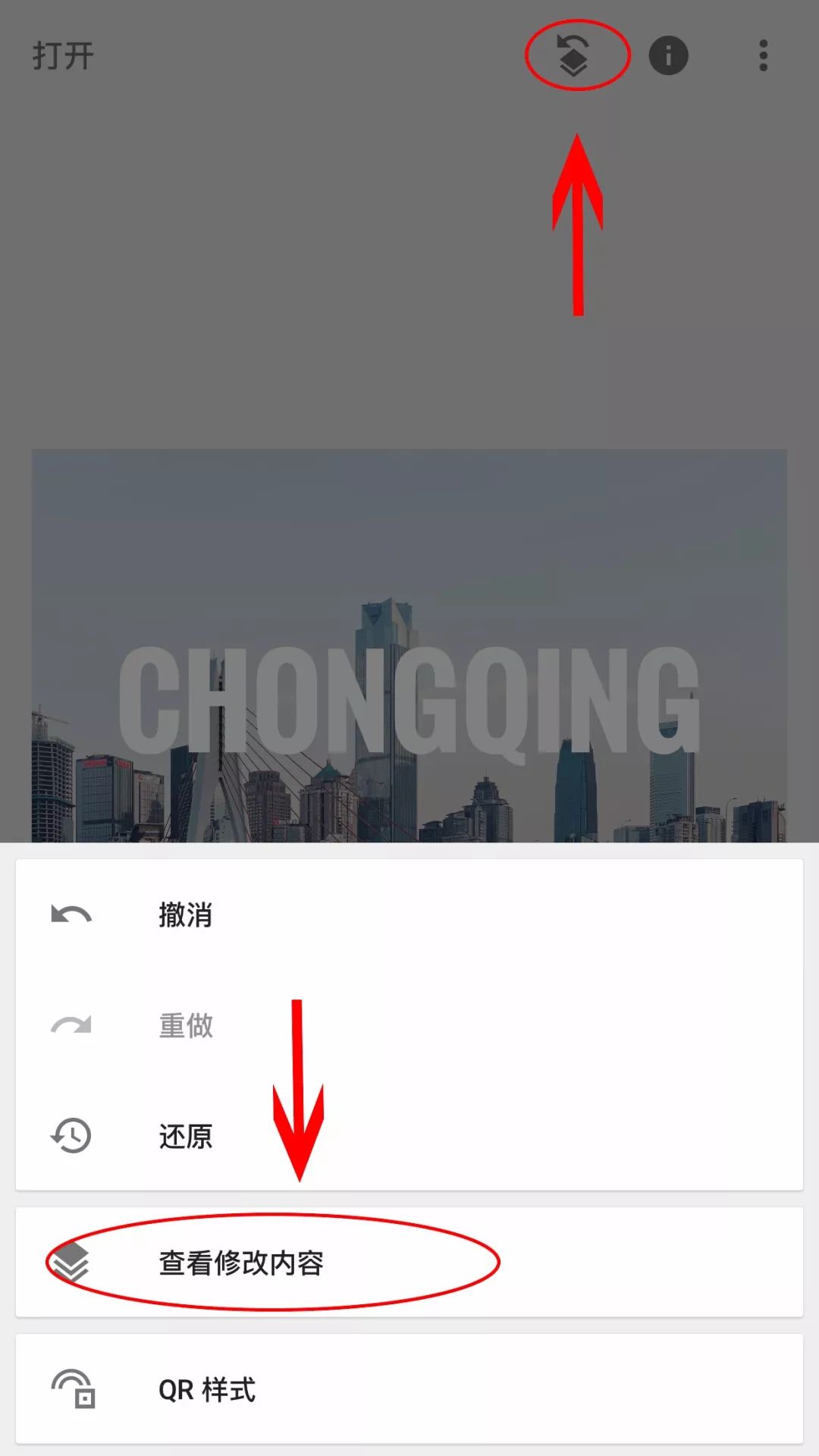 首先,点击右上角第3个按钮,然后再点击【查看修改内容】 :