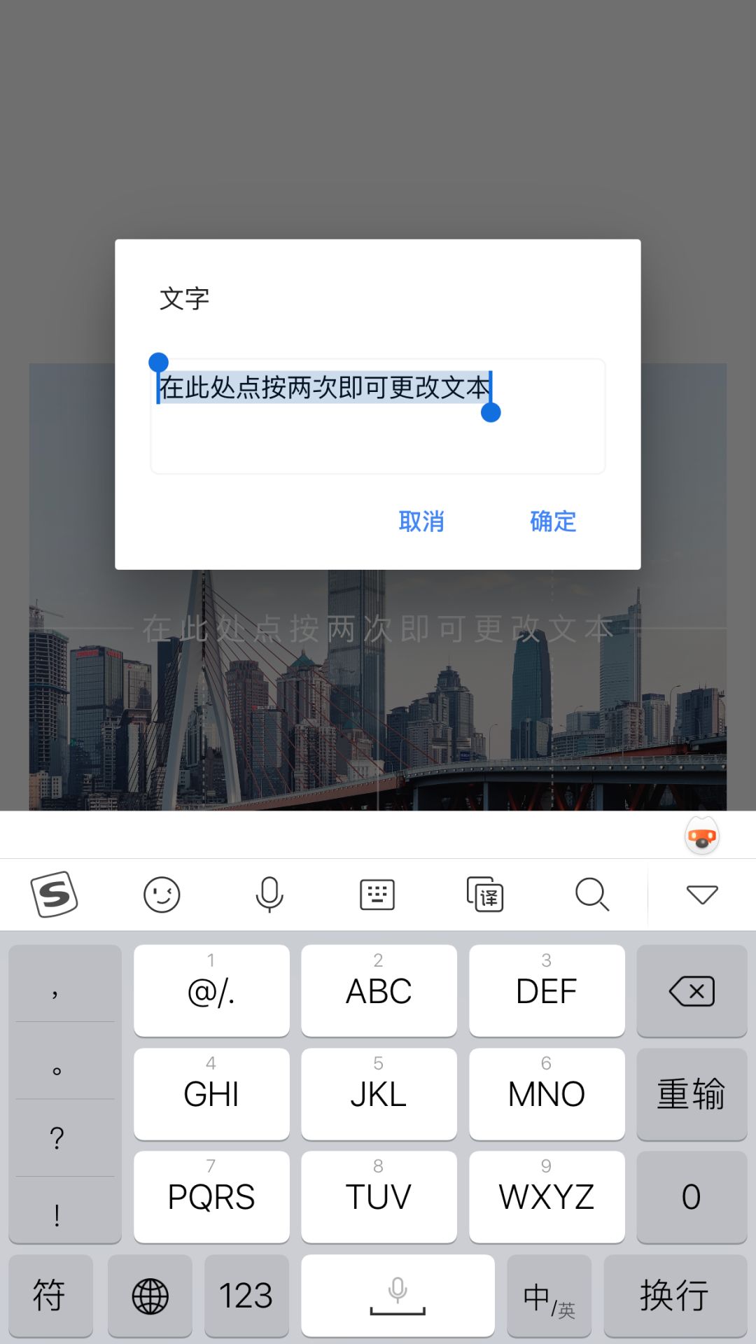 输入文字后,点击底部第3个按钮,选择合适的字体,可以用个手指滑动屏幕调整文字的大小,拖动文字的位置等,完成后点击右下角对勾。