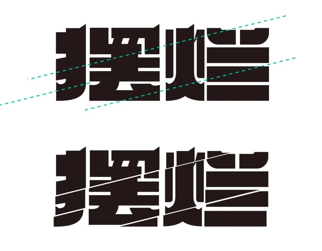 ① 在AI中对做好的字形进行切割移位,这里使用的是相同角度的切割: