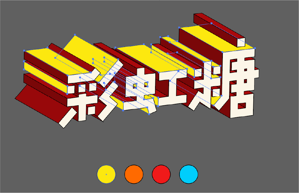 ③选中3d效果字进行扩展,扩展之后,将字体厚度部分填充另一种颜色。(颜色的明暗变化直接参考3D效果所带的明暗变化。)然后给字体整体添加一个1(pt)的黑色描边: