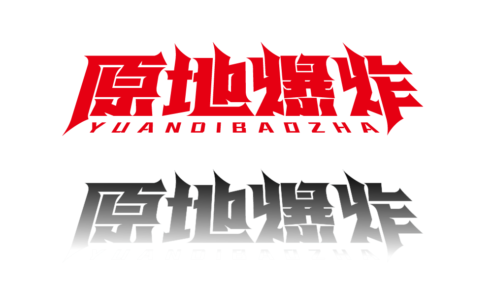 ① 在AI中把做好的字形复制两层,第一层填充红色,第二层填充一个从黑到白的渐变并添加一个白色描边: