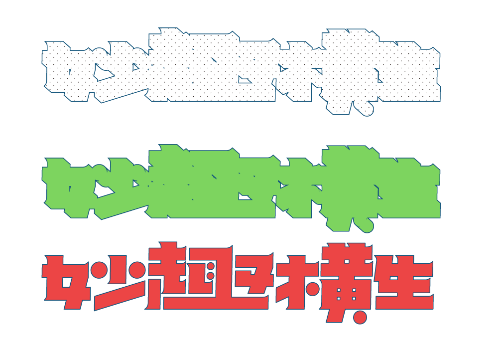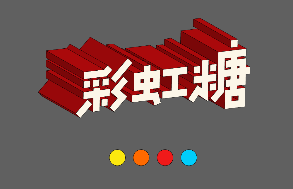 调整完细节之后,给顶层灰色字体部分描边更改一个颜色。复制粘贴最底层的字体并且再次置于底层,然后向右下方位移几下,填充一个比背景色略深的颜色作为投影: