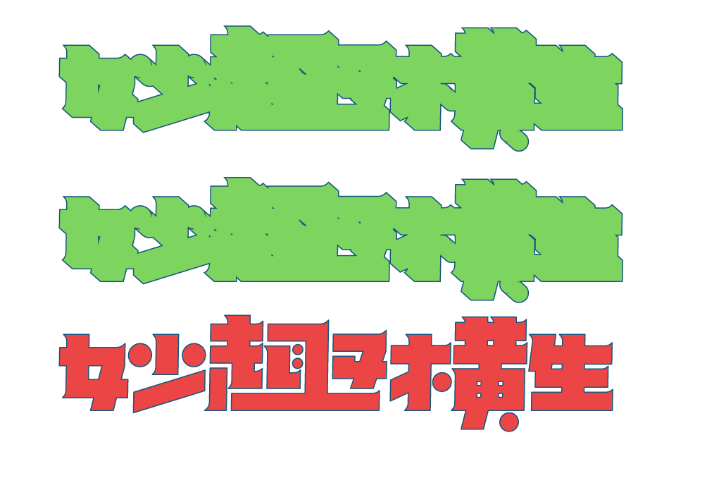 ③合并之后给上面的字填充绿色+描边,下面的填充红色+同样的描边,然后再按住alt向上拖动,复制一层绿色的字,现在一共三层: