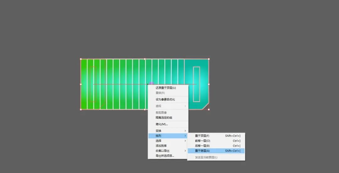 ④ 框选中红色的字形,按ctrl+shift+【,把它置于底层,再把它和黑白渐变的字形水平居中对齐: