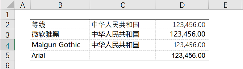 根据你的应用目的和用途来决定字体的种类,如果只是在电脑上查看,文字就使用微软雅黑或者Malgun Gothic,对于数字就使用Arial ,如果你经常需要打印Excel文件,那么除了“等线“字体外,Malgun Gothic字体也是一种不错的选择。
