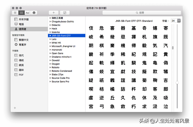 其中还有一款「国铁方向幕书体铁」字体,是将日本地铁上的文字设计成字体,有着非常高的易读性,相信去过日本搭过地铁电车的朋友应该都喜欢车站的广告牌文字设计,而这款字体适用中文,也能从 FONT FREE 网站找到介绍页面及下载链结。