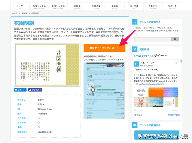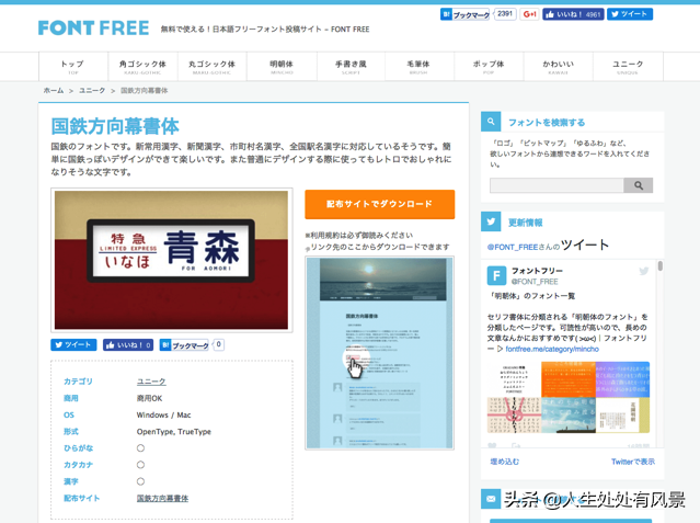 本文要介绍的 FONT FREE 是一个免费日文字体网站,收录相当大量的字体,不过本身并不托管字体档案,必须连回到原开发者网页下载。FONT FREE 提供了简单下载方式截图教学,即使看不懂日文,也能按图索骥,找到自己需要的字体下载使用。