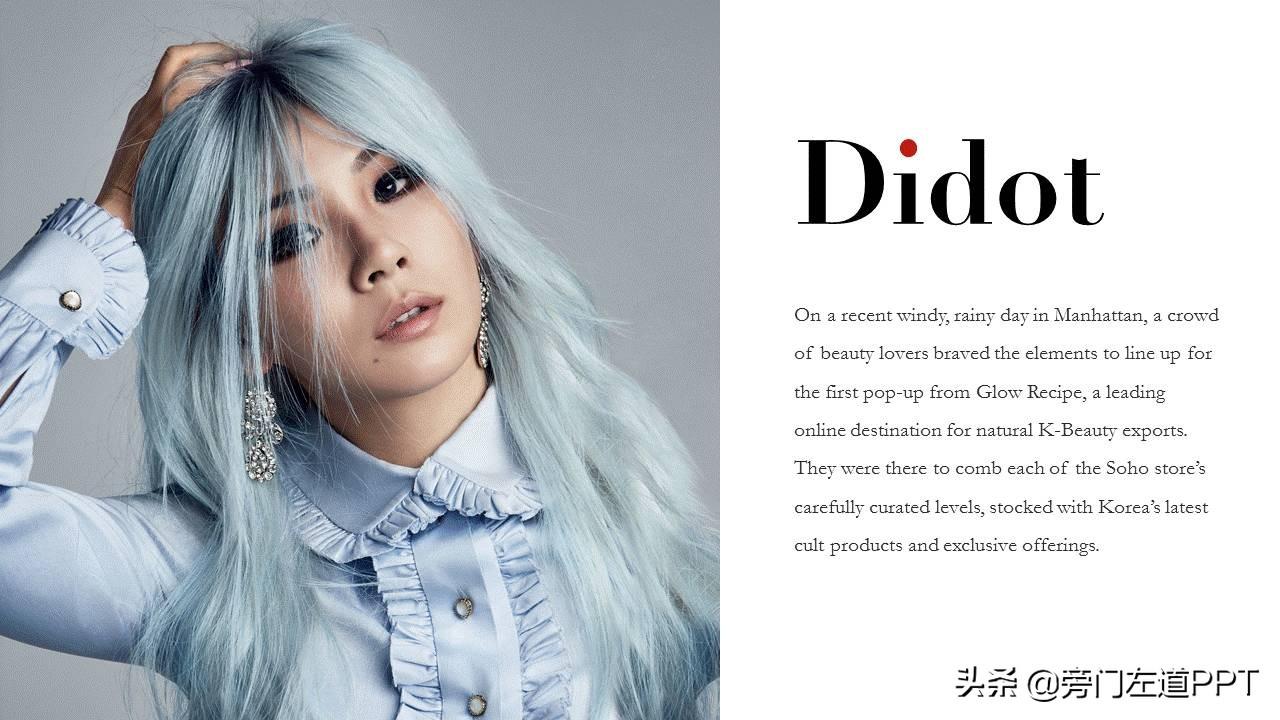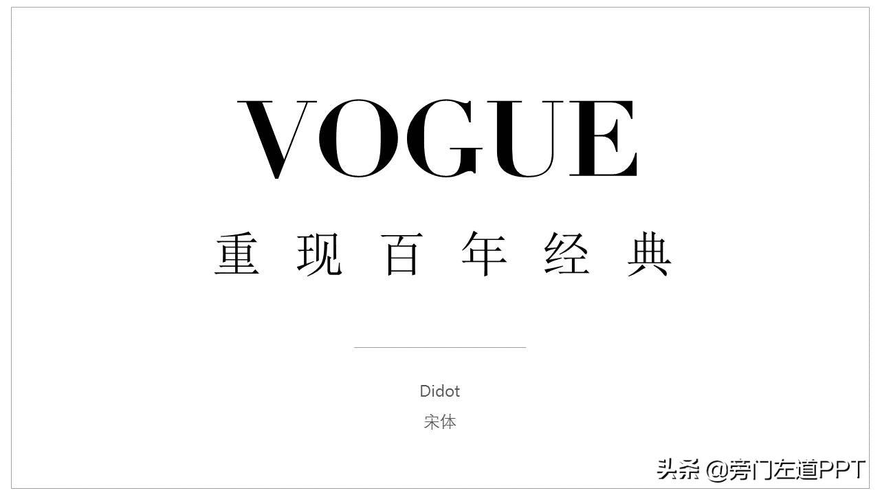 当然,回到 PPT 字体选择上,如果你制作的幻灯片内容主题跟时尚 有关系,其实,可以考虑使用这个字体。效果会很不错。