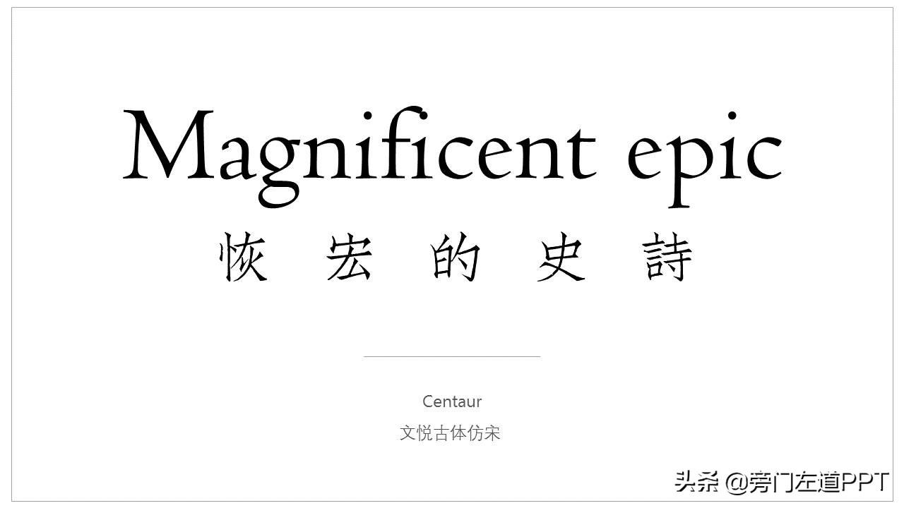如果是拿来用在 PPT 中,效果也非常棒,相当于中文字体中的复古字体,兼顾风格特征和易读性。
