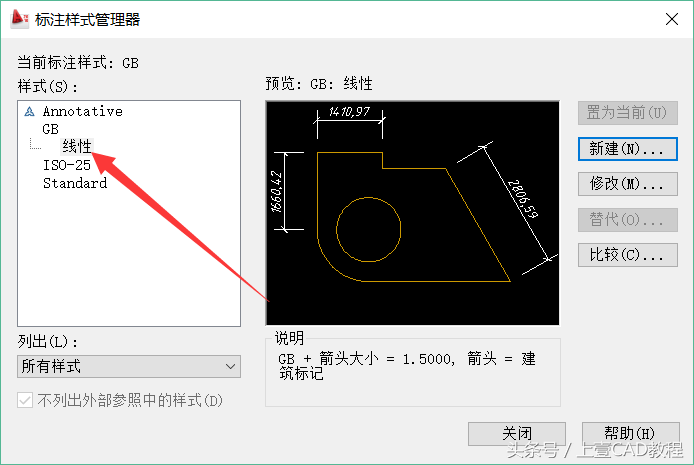 8、点击“确定”,看到GB样式下的线性标注子样式。