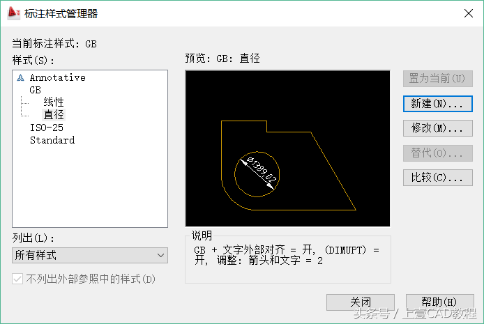 11、点击“确定”,完成GB样式下的直径标注子样式,如图十二: