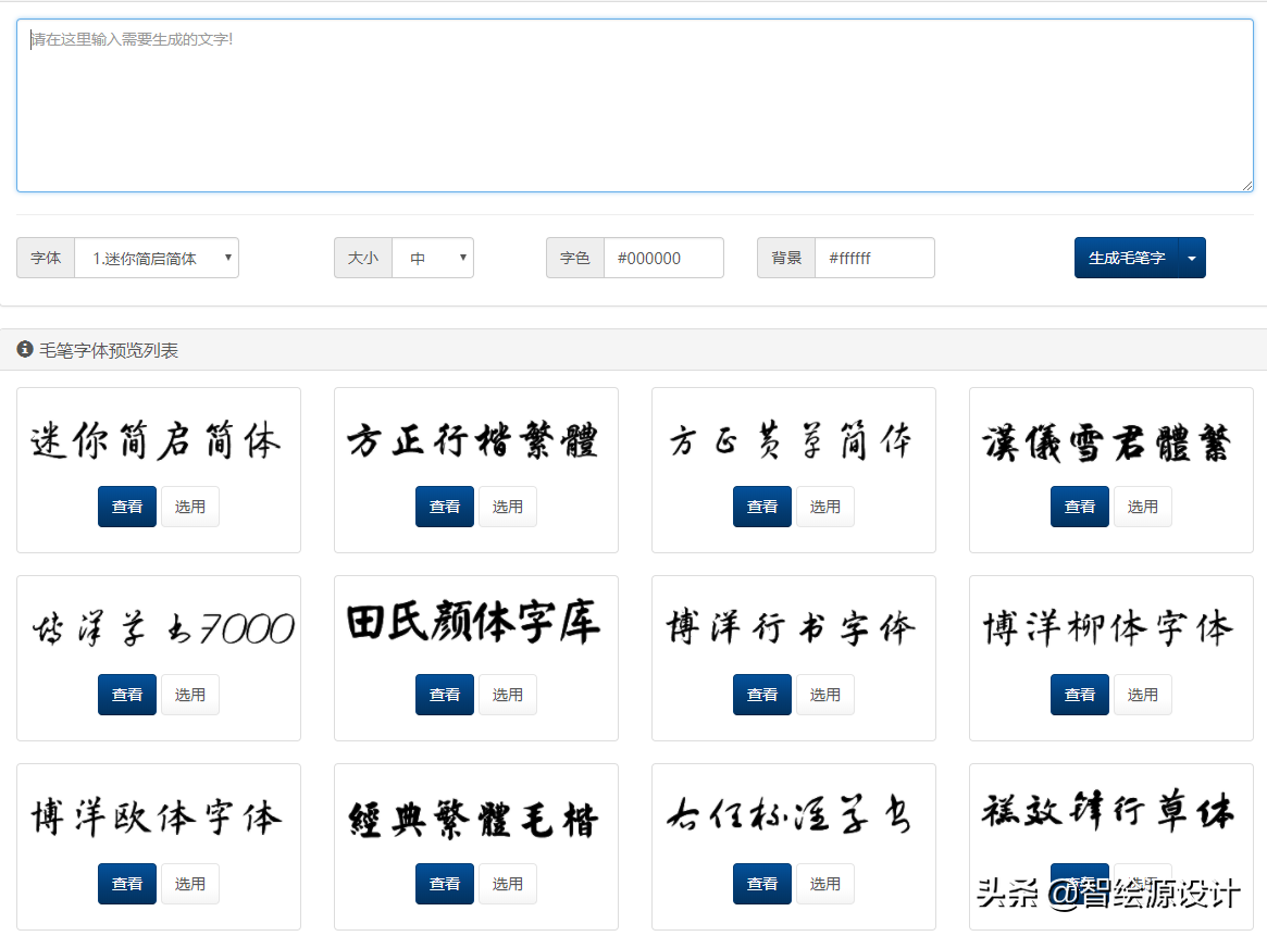 是一个自动生成字体的网站,直接选字体,以及字体大小,还有背景