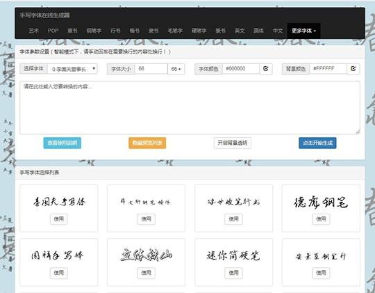 这是一个专门生成手写字体的网站,比如毛笔字体,硬笔书法,小篆等手写字体。
