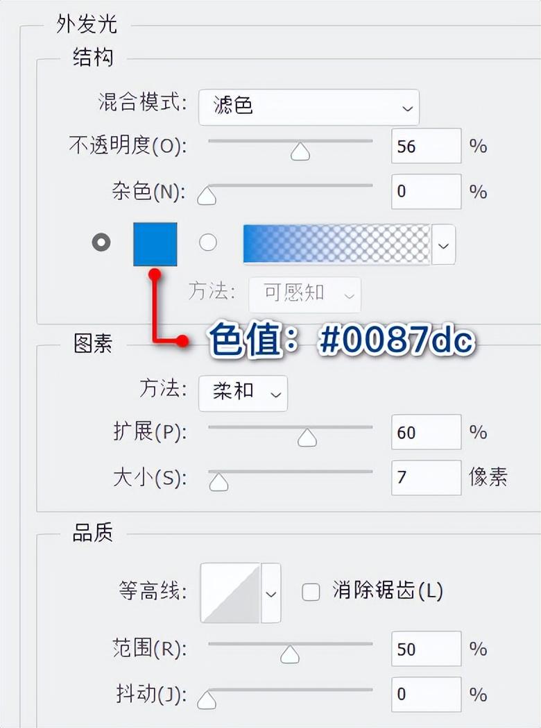 以同样的方式制作其它文字,紫色参考色值:#dc00ca;玫红色参考色值:#fe046e;调整文字大小和文字变形的值就可以了,如图所示。