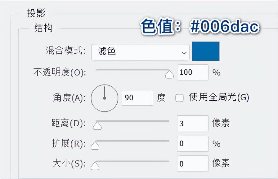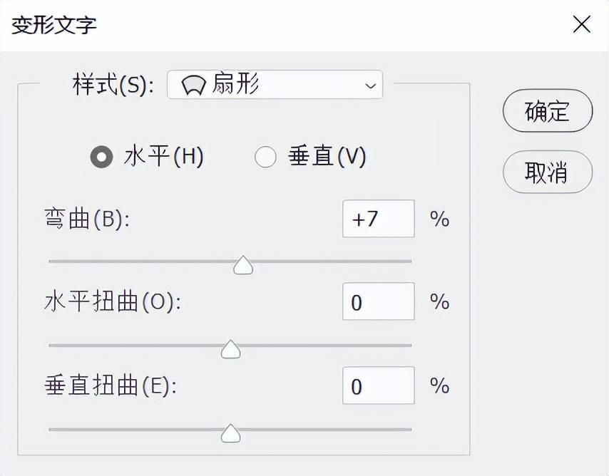 再次使用文字工具输入“生日快乐”,命名为“快乐1”,颜色为白色,放在图层“happy1”的上方,将“happy1”的效果复制到图层“快乐1”,将【斜面和浮雕】、【外发光】、两个【投影】效果,的蓝色系色值,调整为橙黄色即可,可参考色值:#fe9f04;在属性栏将文字进行变形,参考如图所示。