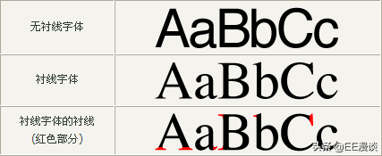 在罗马字母阵营中,字体分为两大种类:Sans Serif和Serif。翻译过来就是无衬线字体和衬线字体。
