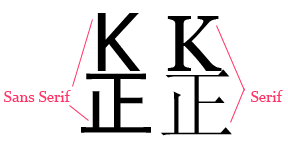 Serif的意思是,在字的笔划开始及结束的地方有额外的装饰,而且笔划的粗细会因直横的不同而有不同。相反的,Sans Serif则没有这些额外的装饰,笔划粗细大致差不多。如下图: