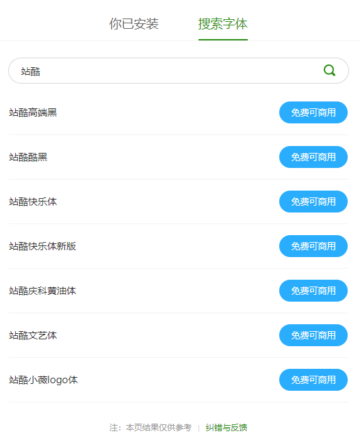 打开网站后,会自动检测你电脑里的字体版权类型,分成“免费可商用”和“商用需授权”两种。