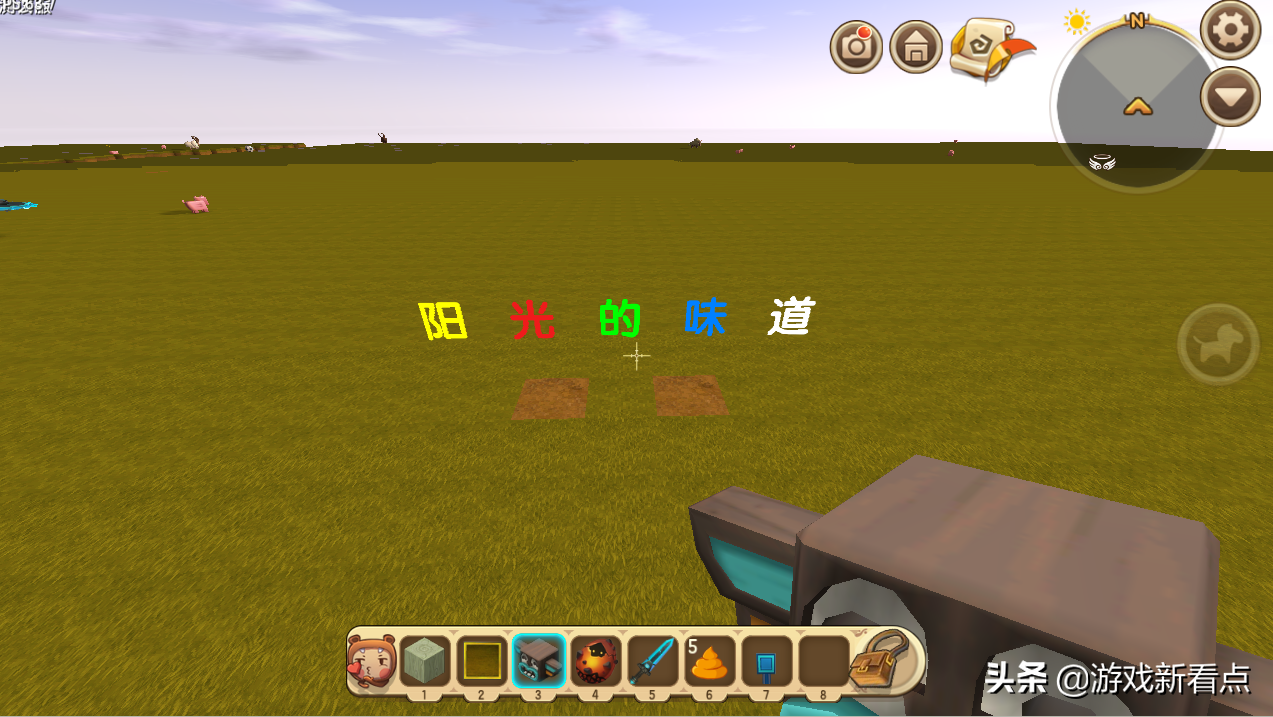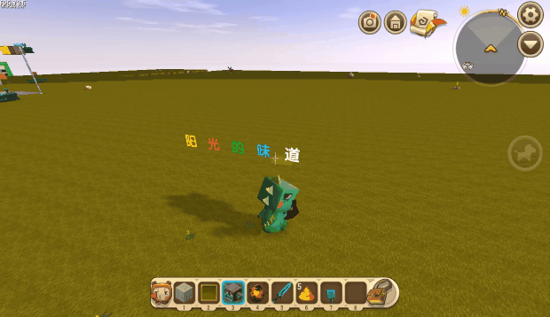 随后我们把神秘图腾全部敲掉,会发现这些字体已经浮在了空中,字牌早已不见了踪影。我们只需要把彩色字体后面的木块敲掉,一个神奇的彩色字牌就完成了!他们悬浮在空中,有一种黑科技的味道,看上去十分高大上,可以用在自己的家园中!但是玩家无意中又发现了一个奇怪的现象!