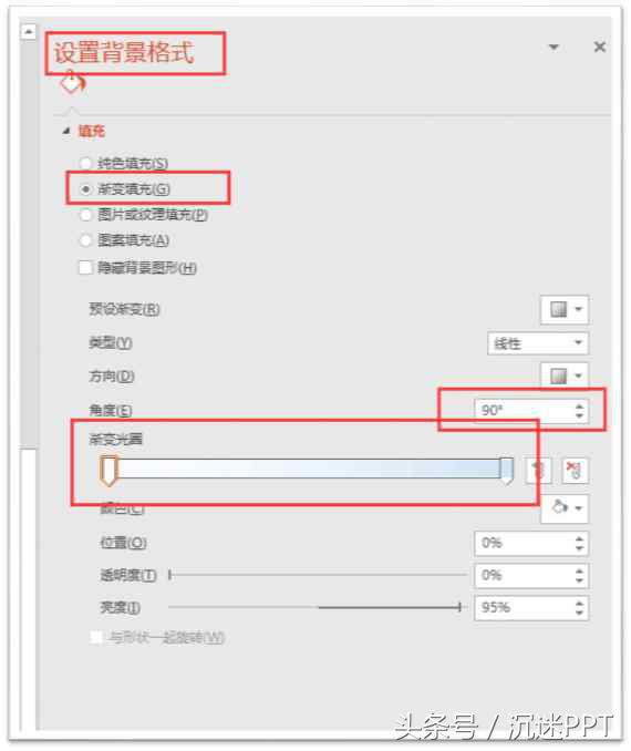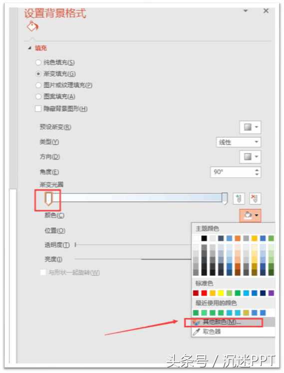 首先设置下背景颜色,如果你的字体要是白色就一定要设置背景格式,不然默认的白色背景怎么可能看得到你的白色字体呢。利用渐变的背景色,也是个整个页面实现某种视觉冲击感,让你的瞳孔看到跟不一样的色彩变化。