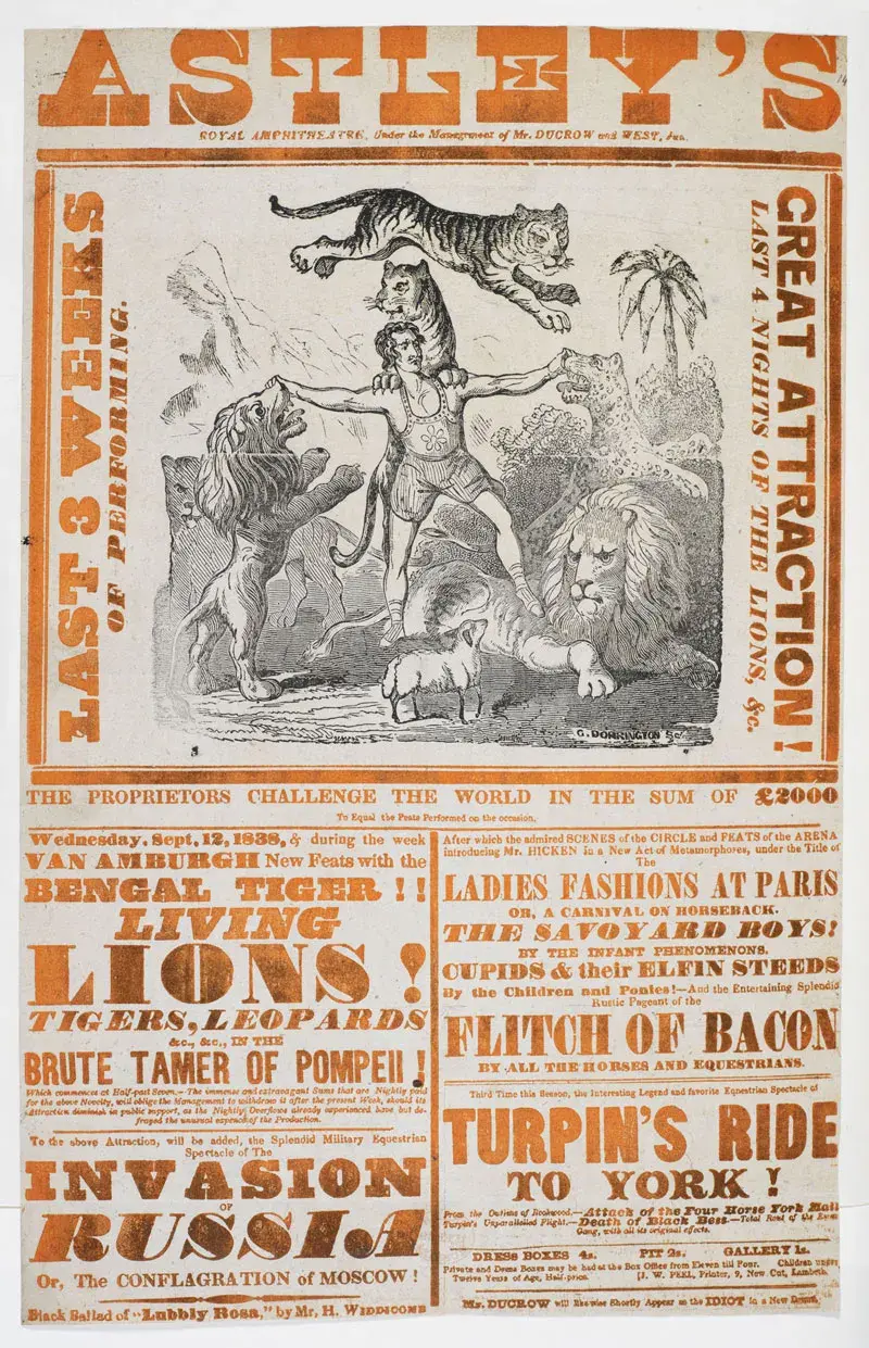 ▲ 除非你正在重新设计一张19世纪的海报,如上图所示,否则一般最好只用几种字体。图像资料:由大英图书馆提供,公共领域,阿斯特利大教堂海报,1838年。