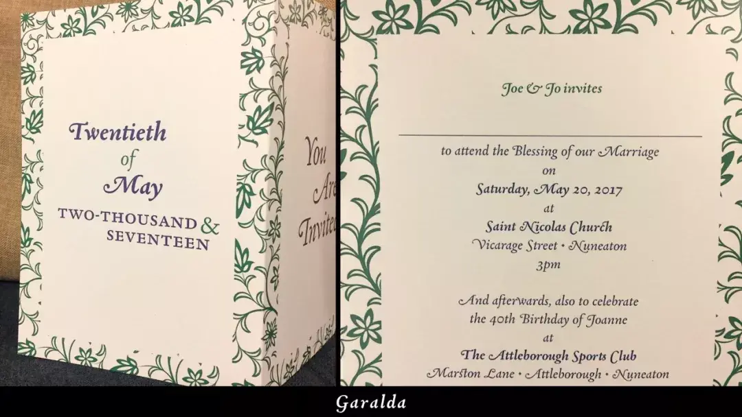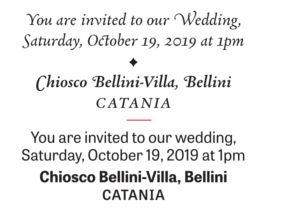 ▲ 在婚礼请柬上使用一个像Tablet Gothic(下)一样的怪诞无衬线体并没有错。但是使用Garalda(上)这样的衬线体,会让婚礼呈现出一个不一样的基调和期望值,特别是使用意大利体,或者其他OpenType特性:花式书写笔形,连字,正文不等高数字的时候。