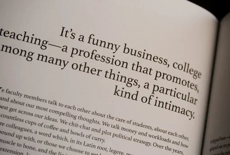 根据经验,有大字腔、开放的笔画端点和笔形有识别性的字体,往往在小字号上表现更优秀,因为它们增加了可读性。一款有正文不等高数字,大写字母高略微低于上伸部的字体,更有助于在正文中形成一个有版面肌理的文字块。琐碎的东西不应该脱离纸面,扰乱阅读的流畅性。