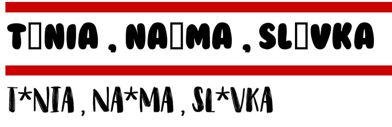 ▲ 选择字体时,必须确保它能满足所有的语言需求。一开始,你可能不需要某些字符,但是当你准备好发布所有内容时,或者当你已经打印出来的时候,发现缺少一个或几个字符,这种情况可能会让你沮丧。在上图中,在热门的免费字体网站上输入三位著名字体设计师Tânia,Naïma和Slávka的名字时,就会发生这种情况。