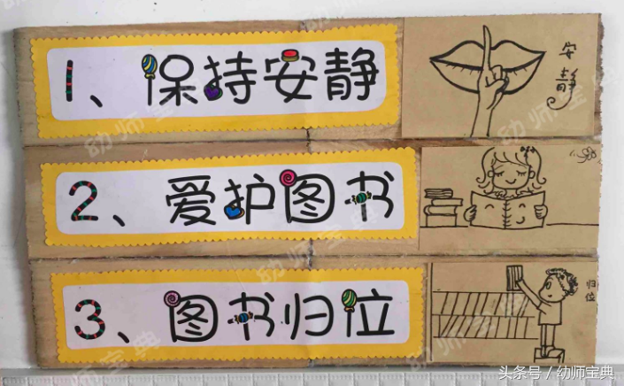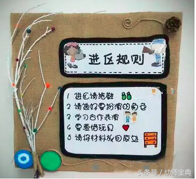 最容易做的一点就是根据情况加花纹装饰,比如宠物区就加上各种小动物花纹来装饰,自然角就加上花朵叶子来装饰,图书区就加入书的图案来装饰,建构区加什么呢?积木。娃娃家加什么呢?娃娃奶嘴围裙什么的。其他区以此类推咯,这个方法是不是很万能?