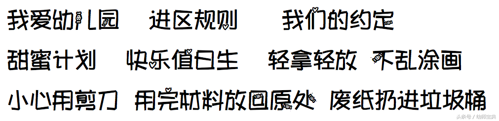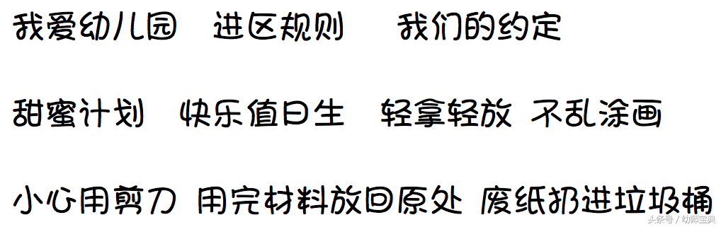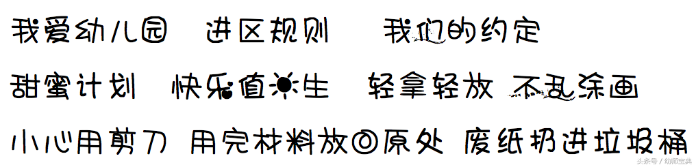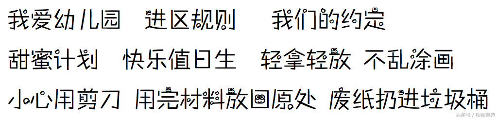 幼儿园里,你可以逃得掉公开课评比、可以逃得过开家长会、可以逃得掉一些文档,但是,不管是你是主班还是配班,永远逃不掉的就是——环创。环创中怎样也逃不掉的就是——字体。