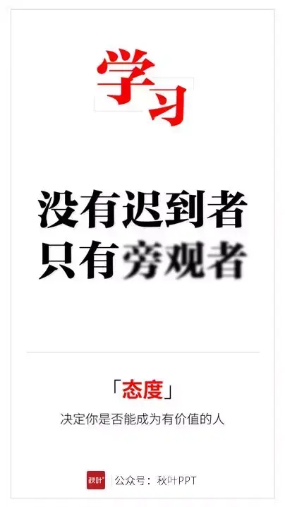 其实,今天讲解的操作技巧,拆分下来都是非常基础的 PPT 操作。但是对于一些需要用关键词引起反思的页面,偶尔来这样一张字体效果,可以起到画龙点睛之笔的作用!