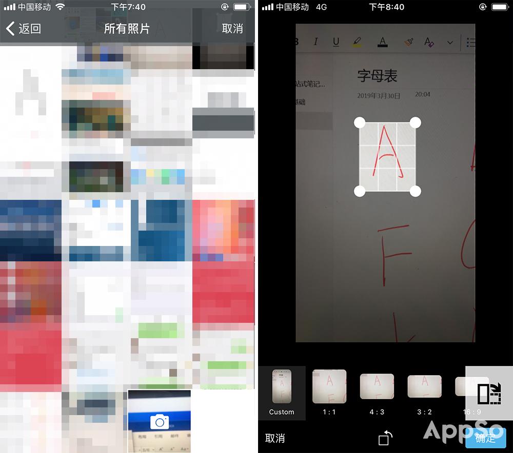 点击空白字母后,就会进入系统相册,接下来,你就可以通过相机拍摄写好的字体,也可以在已经拍摄好的照片中挑选字体。
