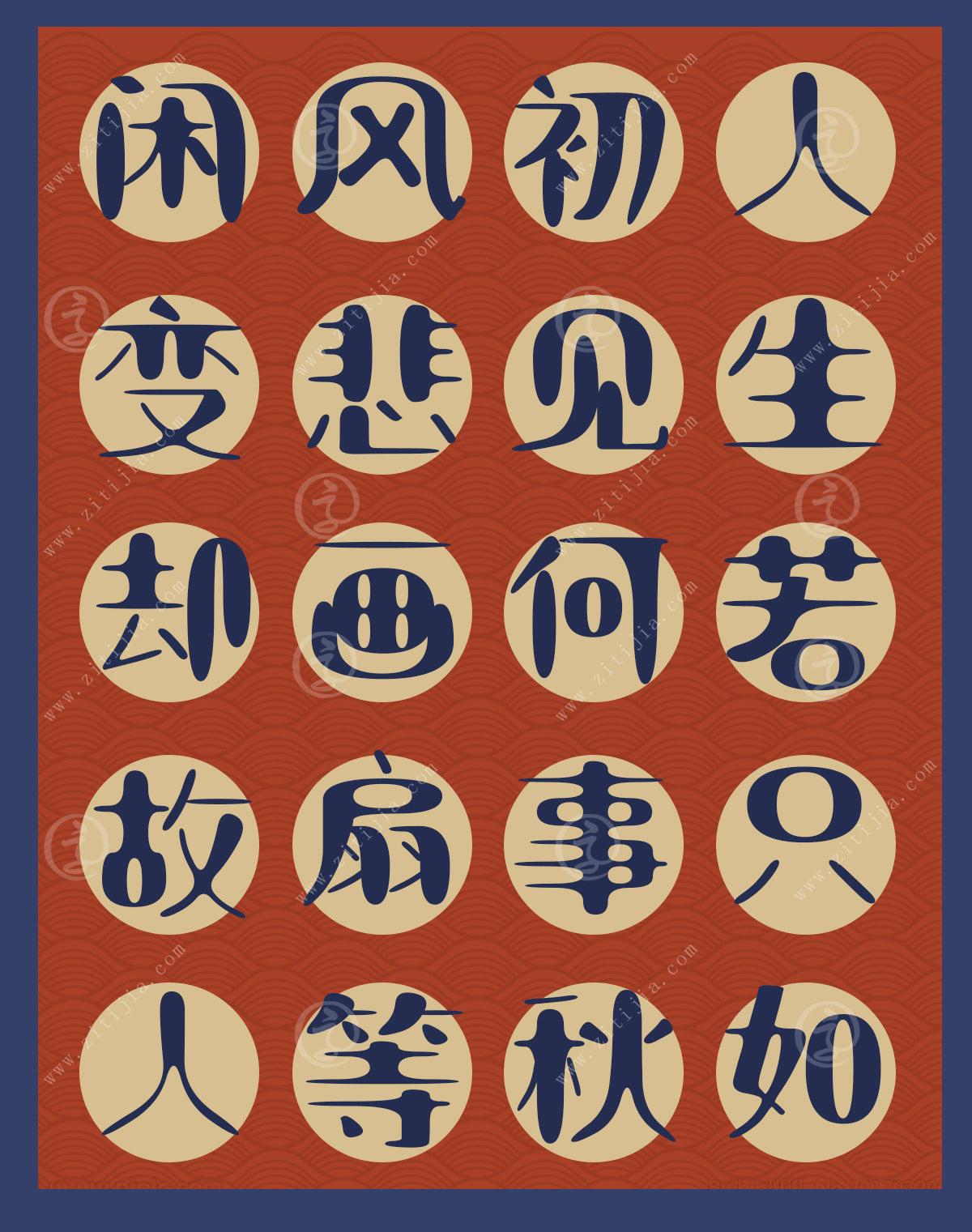 这款字体以即生动又活泼,圆润有趣的字体结构,寓意雅趣圆满,富有哲理性!字体包含6763个中文字体、26个英文大小写字母及阿拉伯数字等内容,能够满足绝大部分的字体编辑需求。能够帮助更多民众直观、便捷的感受字体的美,是你平面设计的不错选择。