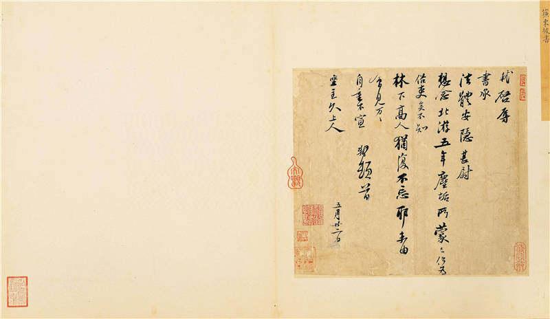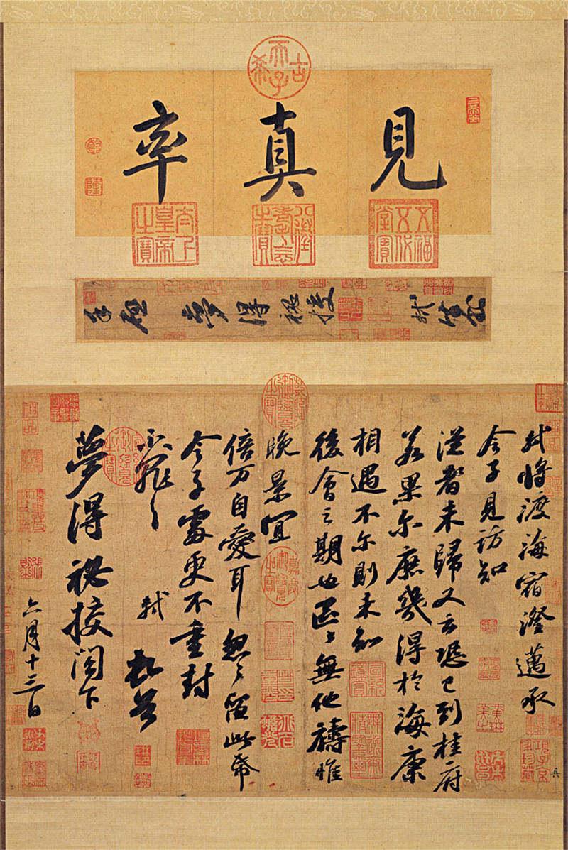 《致梦得秘校尺牍》是苏轼在海南儋州生活期间唯一流传至今的书法真迹,因而极为珍贵。据帖末所提“六月十三日”,推测是他结束三年贬居生活,渡海北归前七天所写。由于未能面辞故交赵梦得,苏轼留此尺牍与友作别,叮嘱“未知后会之期”的友人晚年加倍珍重。不足百字的行书洋洋洒洒,苍劲有力,沉着痛快,浑然天成,被视作苏轼晚年书法风格的典型代表。