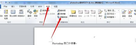 菜单里找‘审阅’的菜单,找到后鼠标左击,打开“审阅”的子菜单