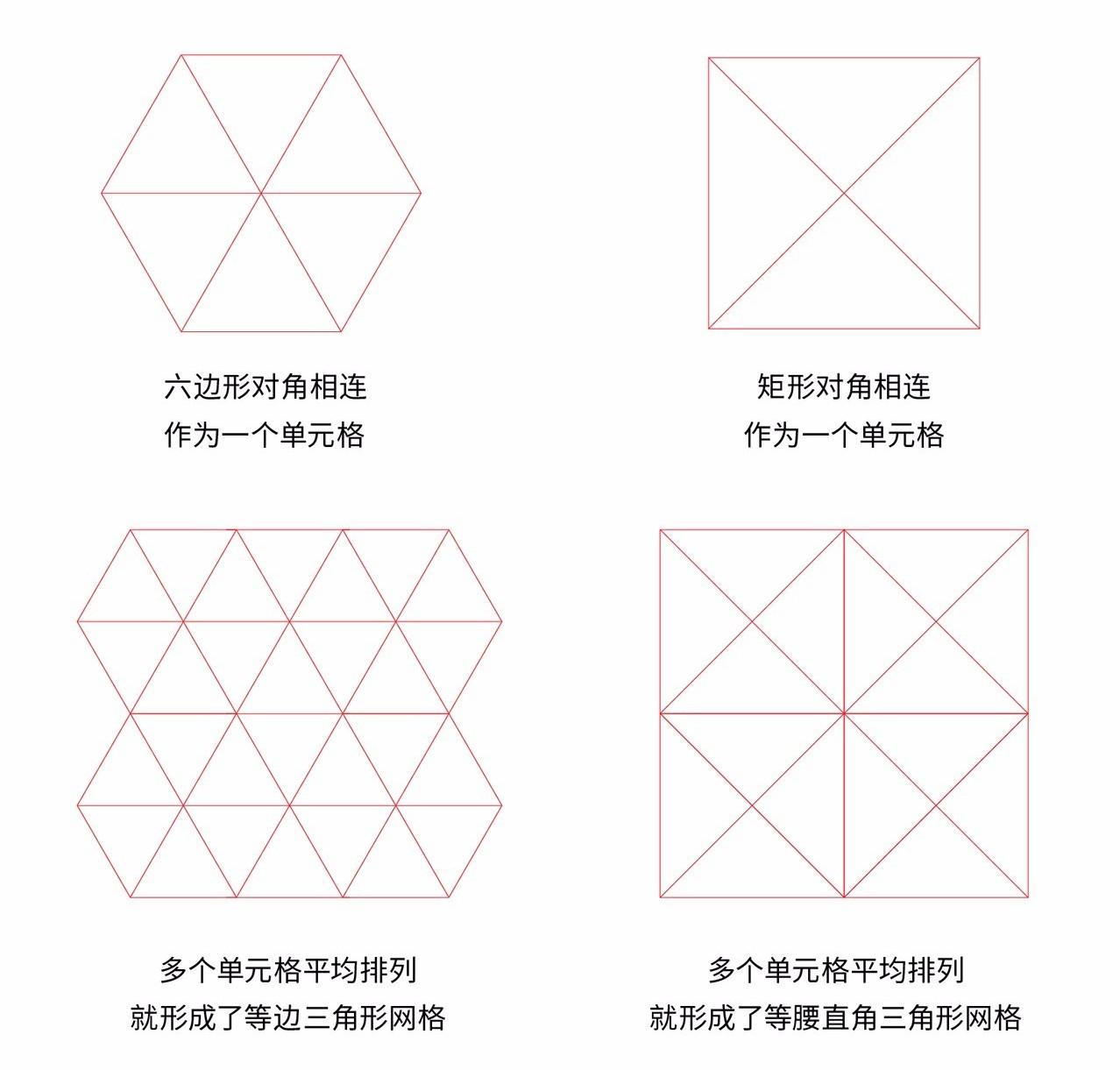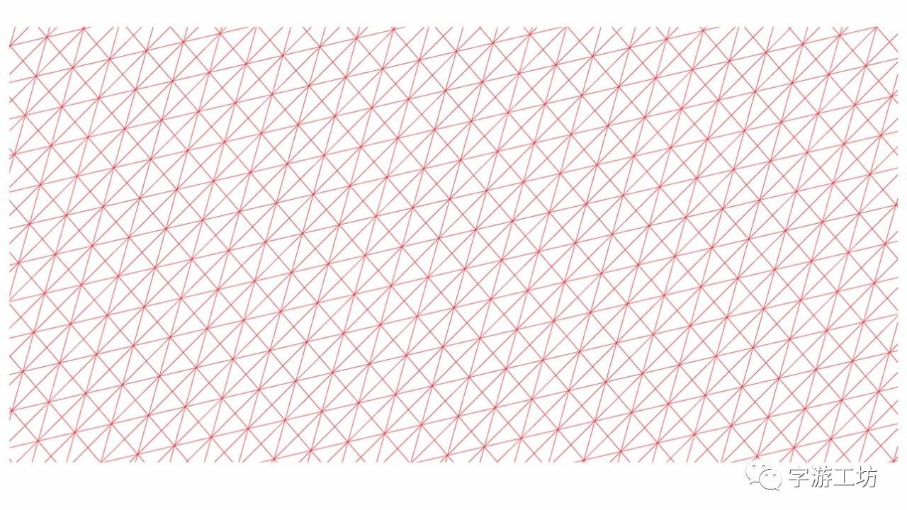 首先确定网格的样式,升级版自然就是非常规的网格了,将直角的网格图通过倾斜调整后的菱形的网格图。(如下图)