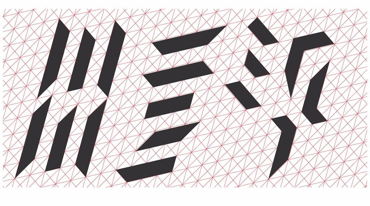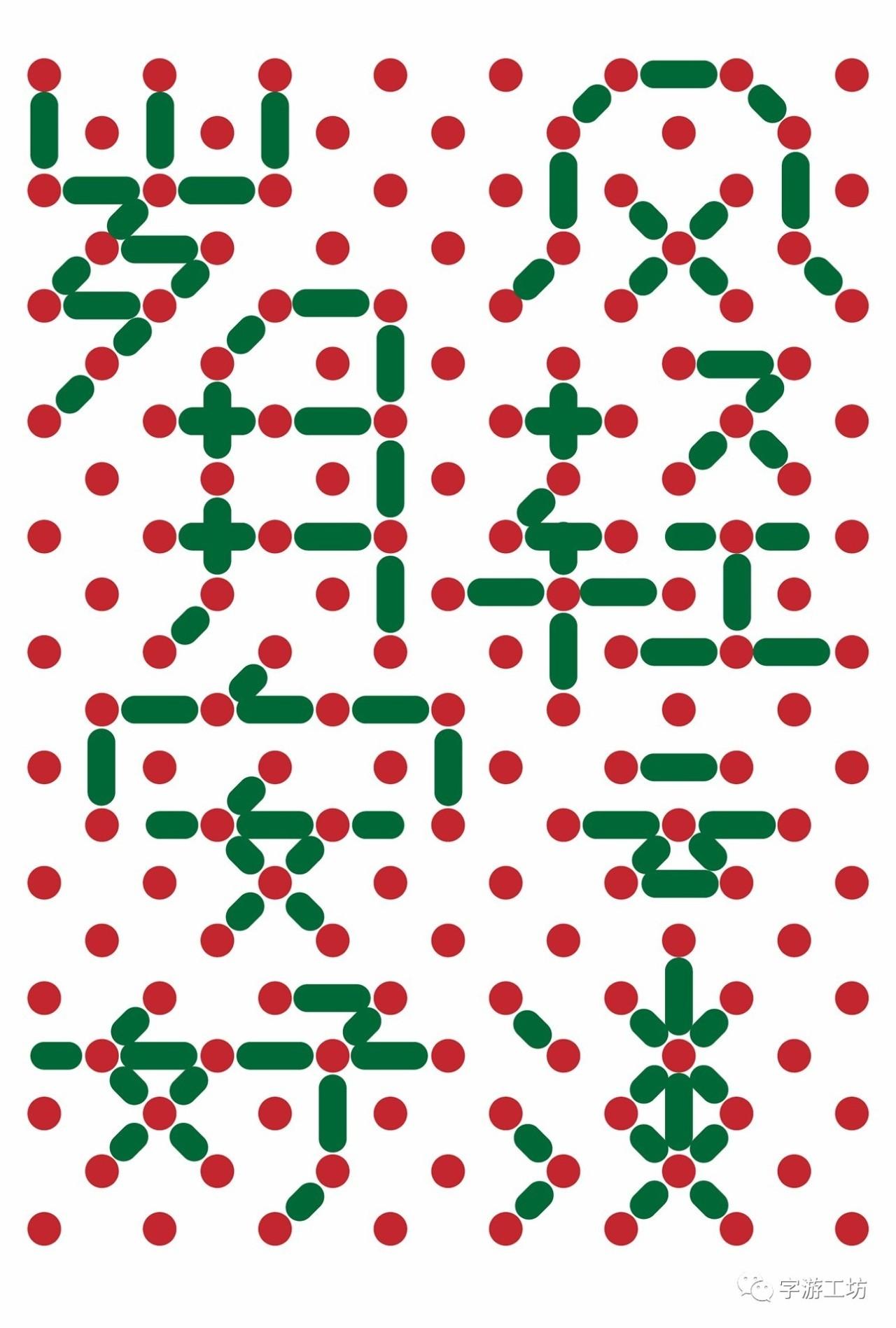 以上都是用类似涂格子的方式来确定基本笔划拼合的字形,其实格子本身的布线就可以作为字体的笔划来使用,而且形式感也会很强。如下图