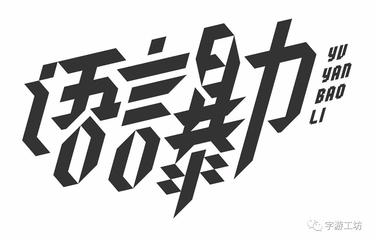 如“语言暴力”可以尝试偏自由些的汉字节奏,(汉字大小一致)同时这样的笔画造型偏锐利具有力量之感,与字意也蛮契合的。