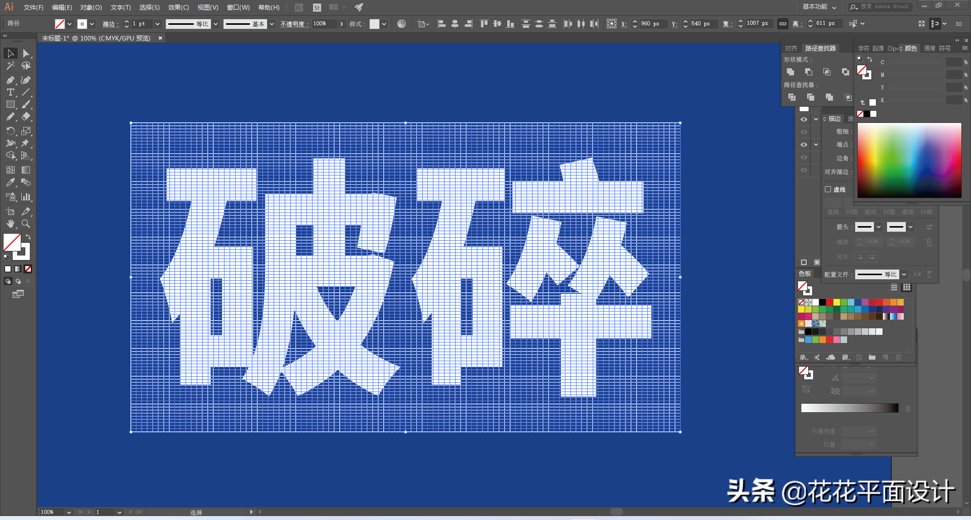 接下来,我们选中方框,选择“对象”-“路径”-“分割为网格”。在这里,行数和列数我们都设为100。