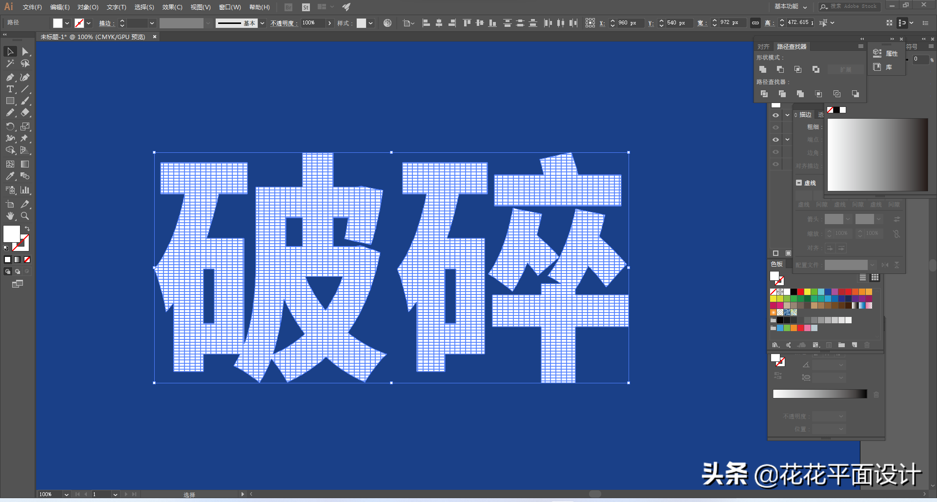 我们选中所有的网格和文字,点击路径查找器面板中的“分割”按钮,然后右击“取消编组”。