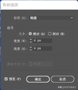 我们选中所有的文字,选择“效果”-“转换为形状”-“椭圆”。在这里,“大小”选择“绝对”,宽度和高度都设为4px。