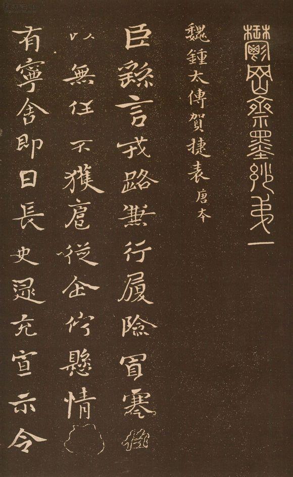 欹侧之美魏晋之钟繇、王羲之已有之。小楷之祖锺繇作品也都含茹着这种欹侧的态势,当然它还不是非常明显,但应看做是小楷欹侧美的滥觞。尤应指出,锺繇小楷《贺捷表》,还以其摇曳的笔势和带有飞动的隶势,在一定程度上强化了左低右昂的欹侧之势。袁昂《古今书评》说锺繇书“若飞鸿戏海,舞鹤游天”,《贺捷表》就显著地体现了这种具有侧势的动态之美。