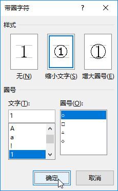 在【带圈字符】对话框中,选择圈的样式,文字及圈的形状,单击【确定】按钮。