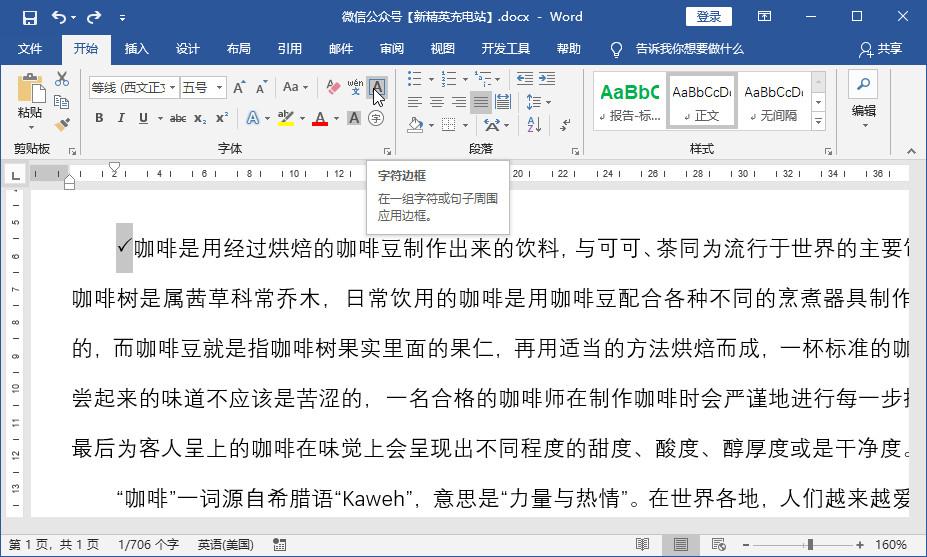 Word软件可以为文字添加上边框,制作出带框字符的效果。这个功能较少用到,但是使用这个功能,可以制作出带边框的文字。