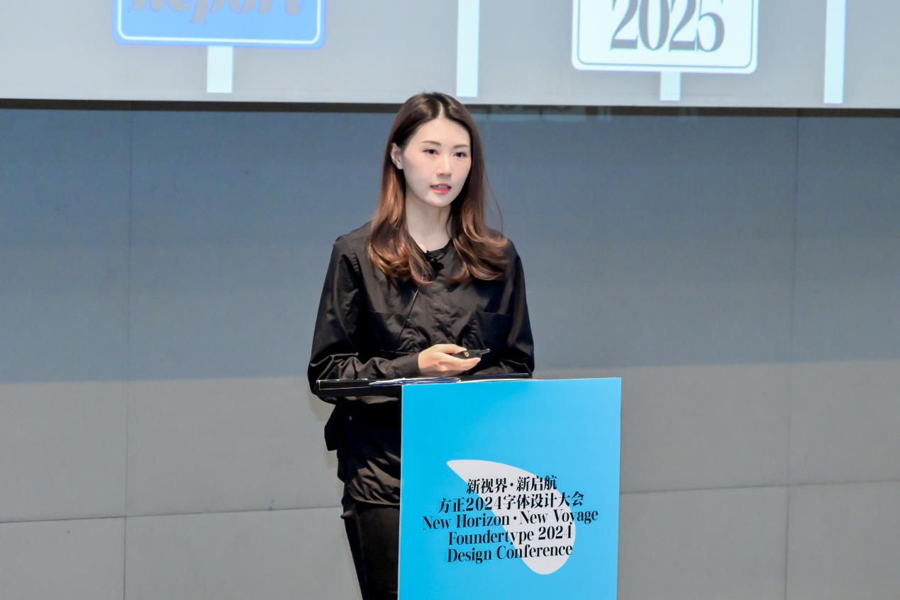 此后,方正字库定制业务服务总监张依晨为大家带来字体服务和字体行业的趋势分析。在字体服务趋势方面,张依晨深度阐述了如今定制服务细分化和行业服务深度化的发展趋势。字体定制作为品牌战略重要部分,如今已发展出各种细分服务,包括品牌行业专门定制、特殊字符集定制、多语种助力品牌出海、排版引擎助力定制字体等。张依晨以抖音等互联网企业、荣耀等手机品牌、喜茶等茶饮品牌、福田等汽车品牌为例,向观众们展示了定制字体如何在品牌建设、文化传播、技术应用、产品出海等多个方面为品牌传播助力。除了更细分的定制服务外,张依晨还向观众展示了中文字库行业在行业深度服务上的挖掘和成果,例如,方正字库深入汽车行业,为智能网联汽车设计专门用于车载显示的“方正悦驾黑”,并联合多家车企和行业协会发布《车载视觉信息汉字显示规范》。除此之外,张依晨还介绍了中文字体行业近年来在行业共建、产学结合、兴趣社团等方面的发展现状和未来方向。