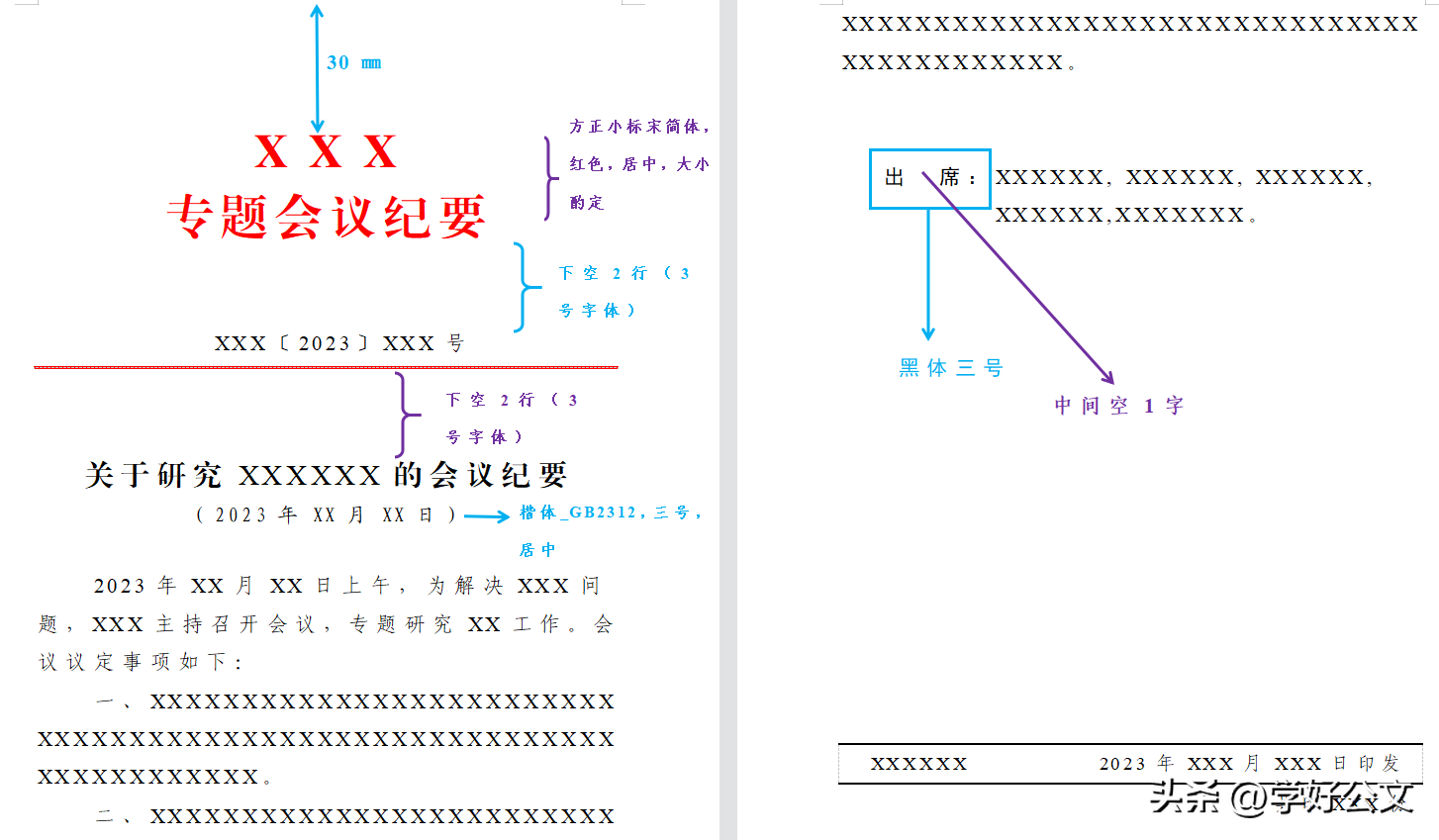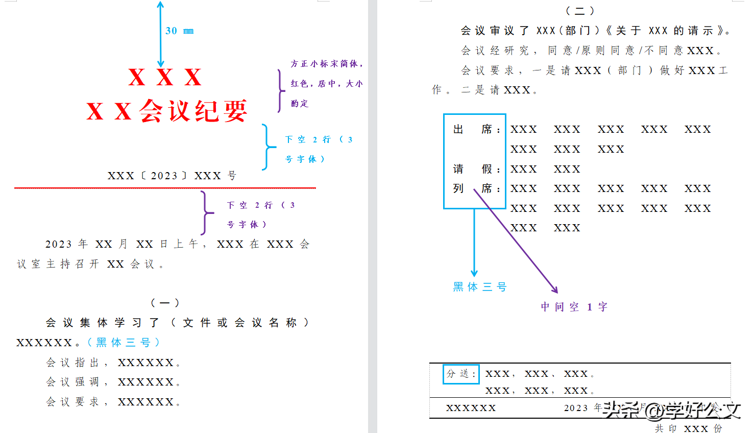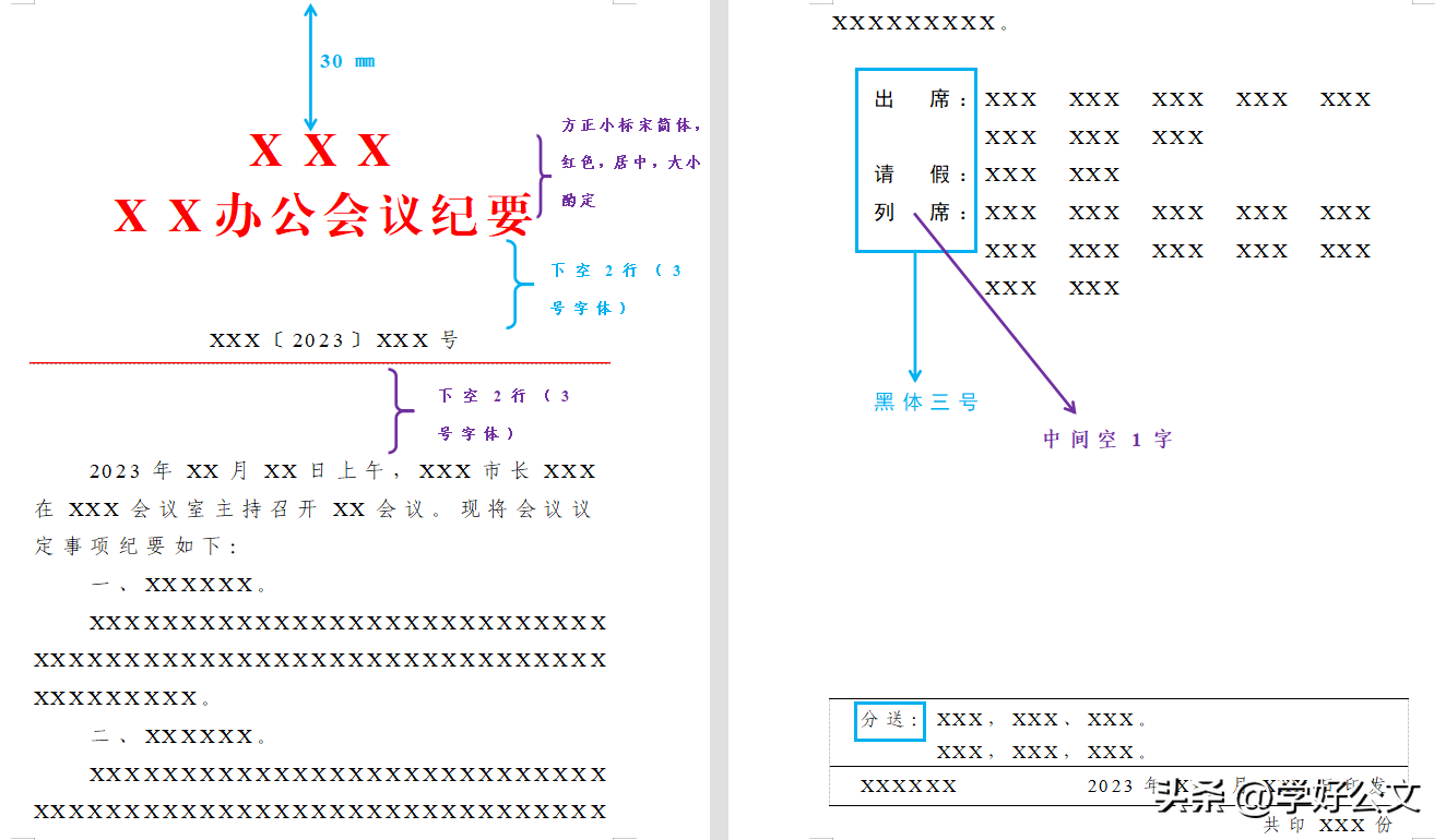 ——纪要不加盖公章 ,版记部分与正式公文一致,具体参数可以参照我之前的文章。版记“抄送”二字可以根据情况改为“分送 ”,纪要往往是内部文件,一般是往二级部门分发落实。