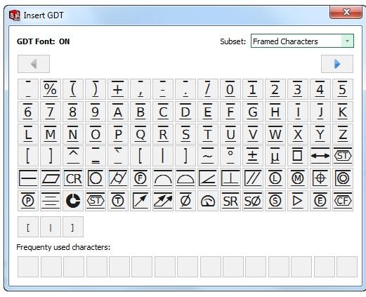 在SOLIDWORKS Inspection中,我们可以使用“特征”窗口提供有一个新的 GDT 字体,当启用 GDT 字体功能时允许使用小写和大写字母。“值”字段旁边有一个新的“插入 Cad 符号”按钮,它将打开一个弹出窗口,您可在其中选择要添加到字段的任何 GDT 字符。